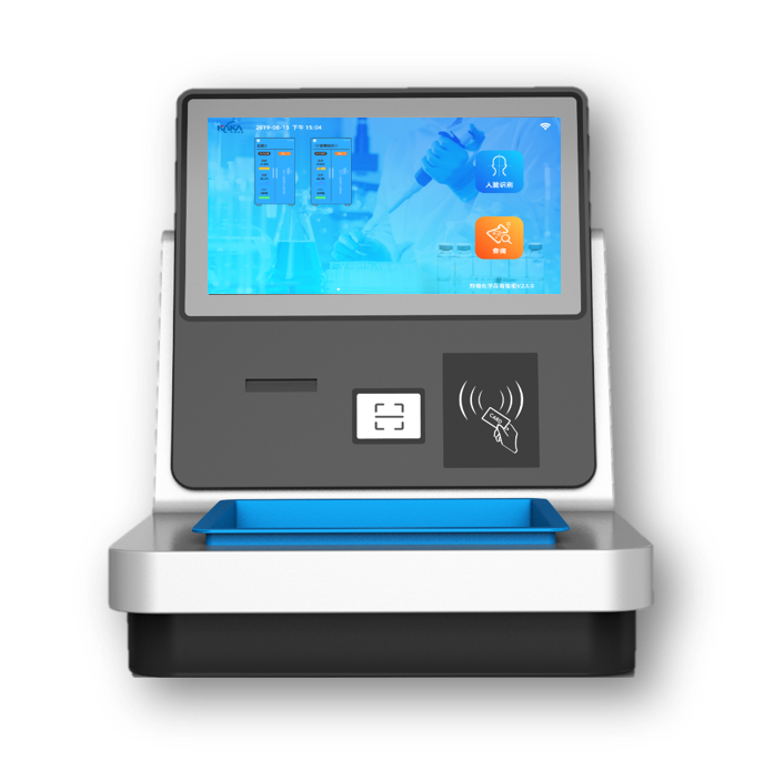 主要用于人員權(quán)限驗證登錄智能柜系統(tǒng)(可以通過手機端系統(tǒng)、一卡通、人臉識別、密碼驗證等方式登錄),化學(xué)試劑的稱重、信息識別及數(shù)據(jù)上傳,也承擔(dān)著物品的領(lǐng)取和歸還記錄查詢和展示,支持視頻記錄的查詢和存放。